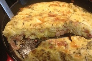 8. Allow to cool about 5 minutes before slicing the frittata like a pie to serve.