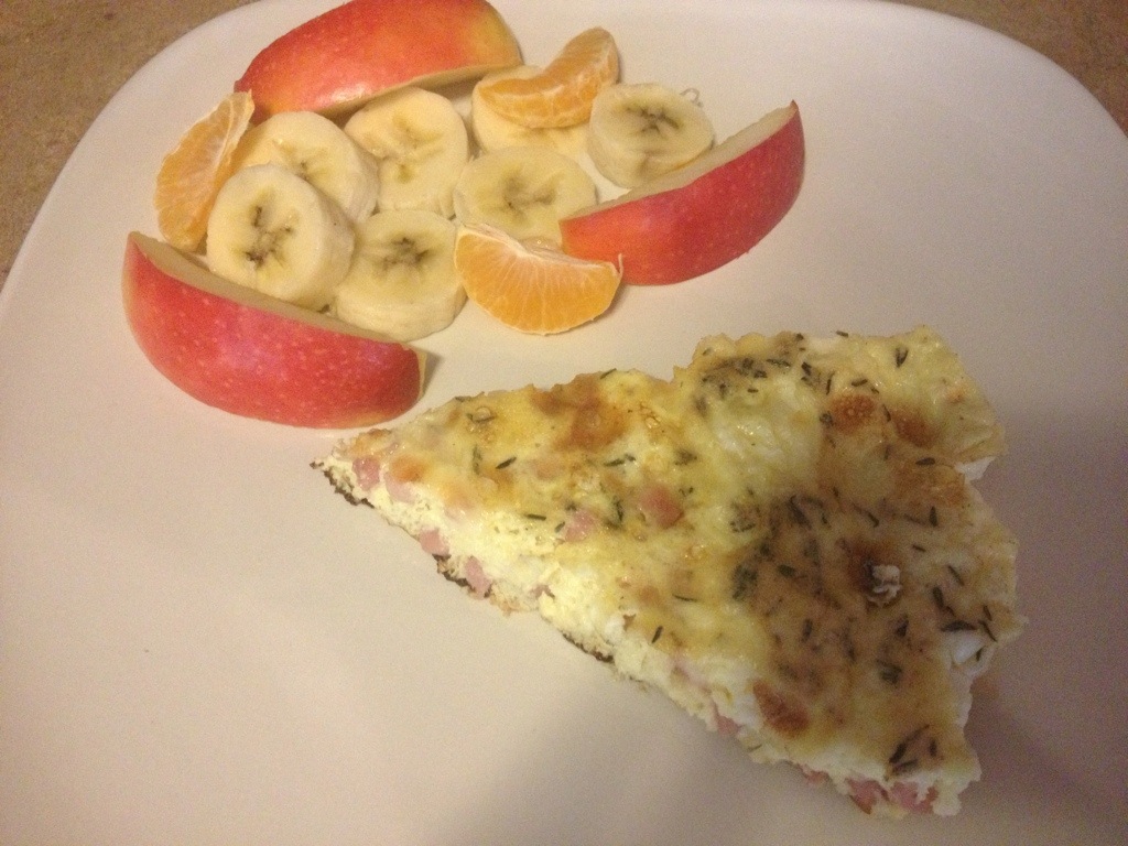 This was pretty good, and it was really quick. I served it with some fresh fruit in a 1/8 serving size, but it’s pretty low-cal and full of protein, so i’ll list different serving sizes today, in case you’re a little hungrier 🙂 Great for Breakfast, Brunch, or Dinner, and Frittatas are versatile, so I’ll be posting more versions with different ingredients in the future.